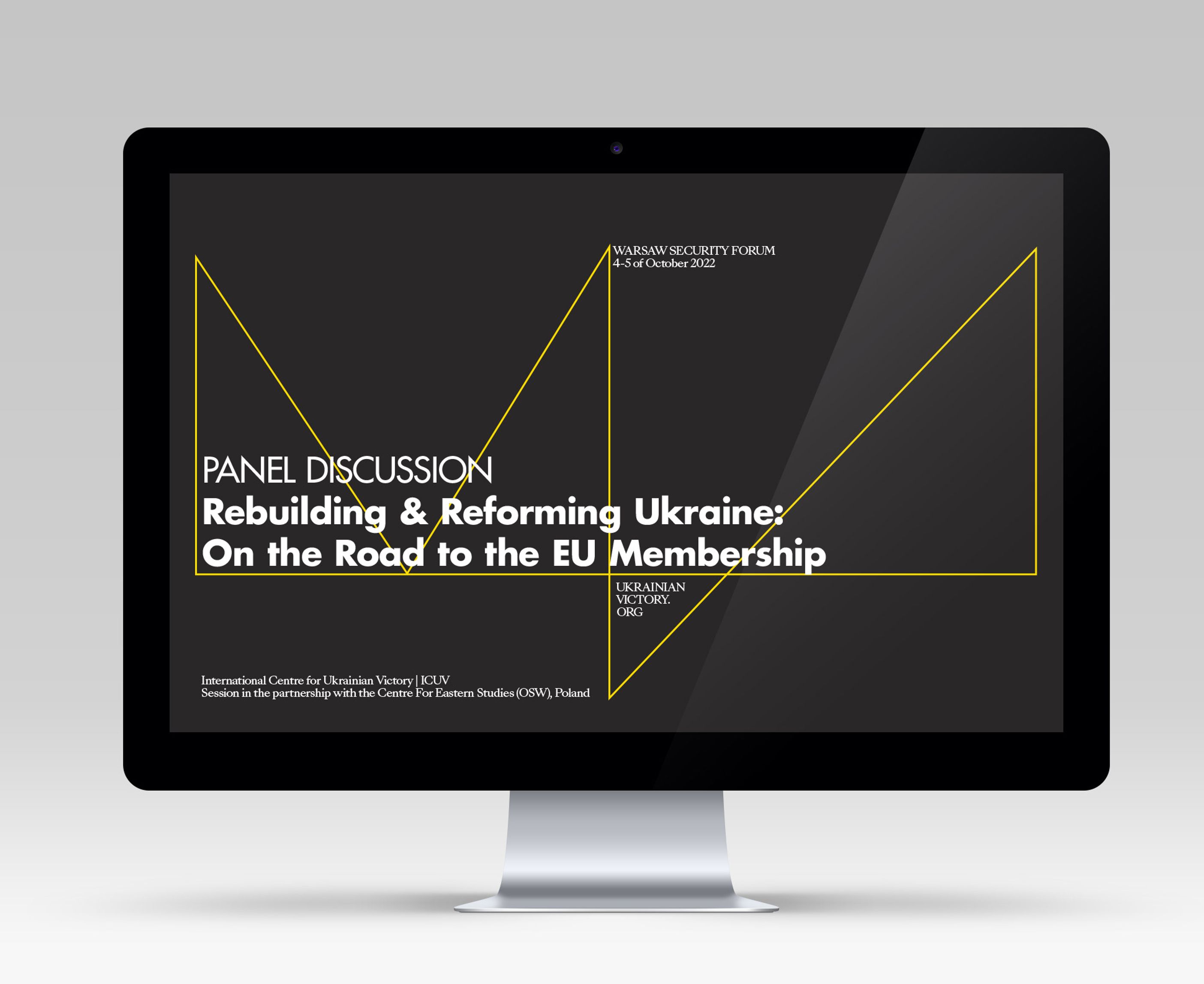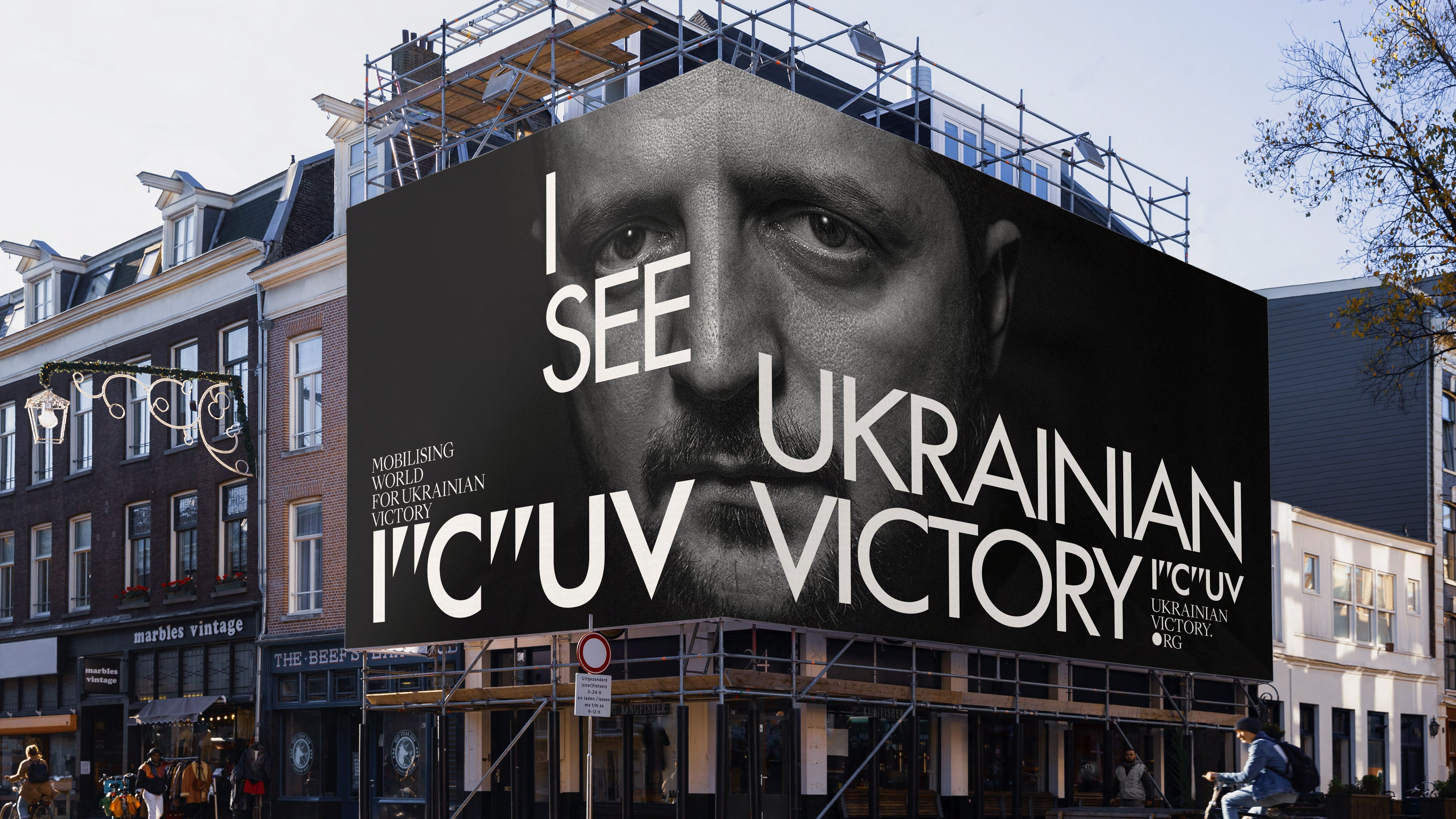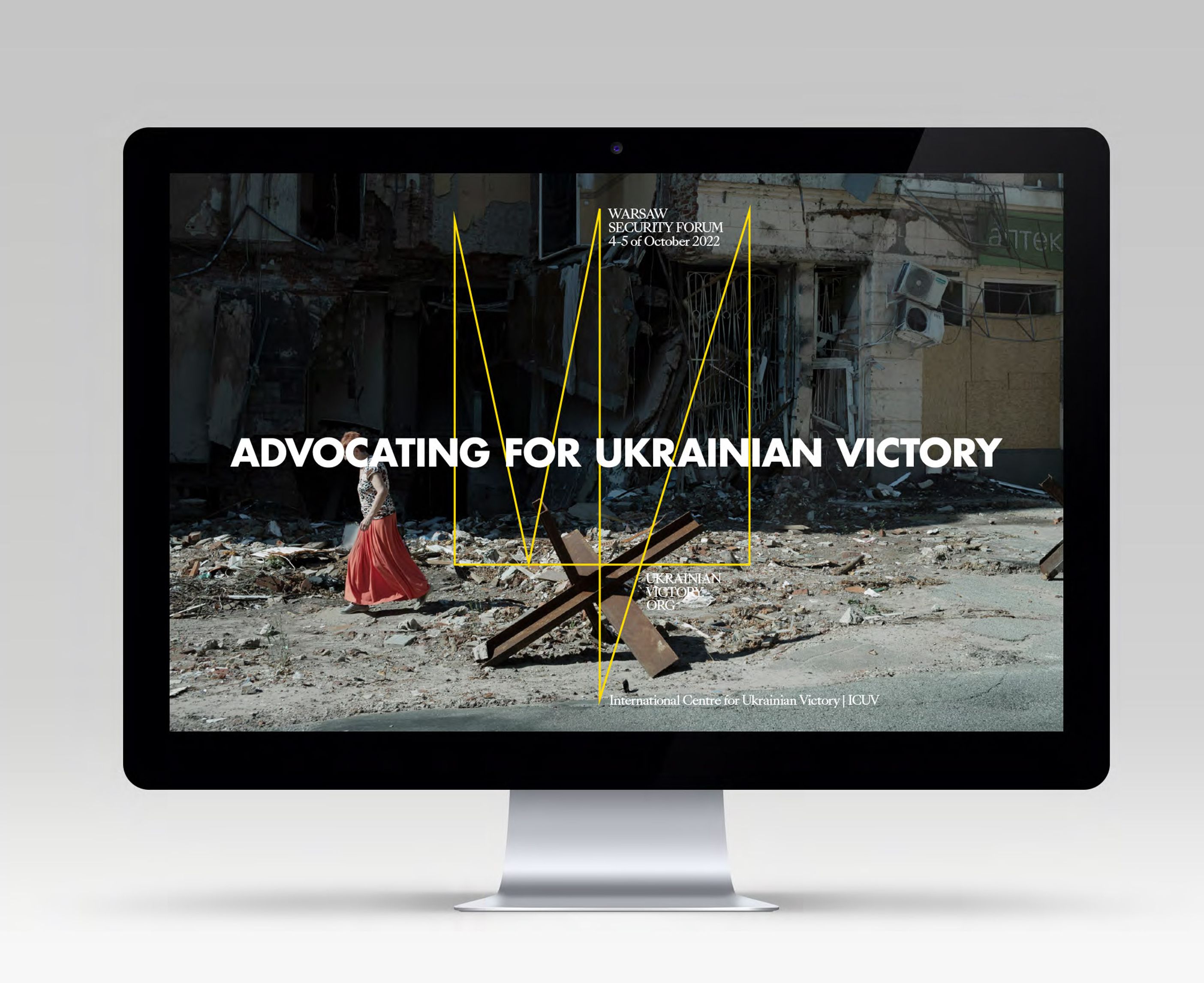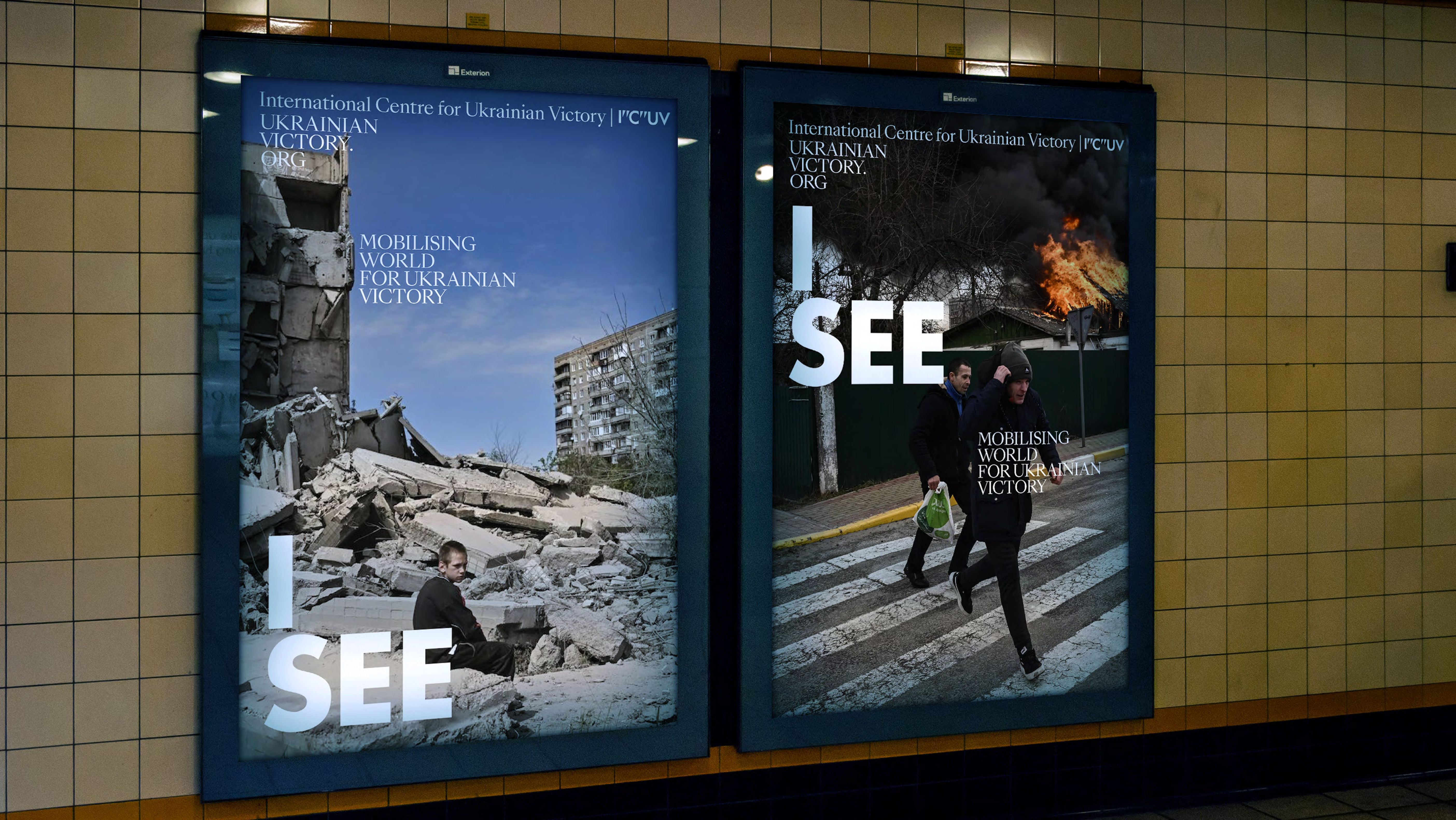 We emphasised the “C” in the abbreviation to create “I SEE Ukrainian Victory,” incorporating sharp, fang-like quotation marks into the logo to convey the strength and resolve of Ukrainian civil society in its struggle for independence against a totalitarian gulag empire.