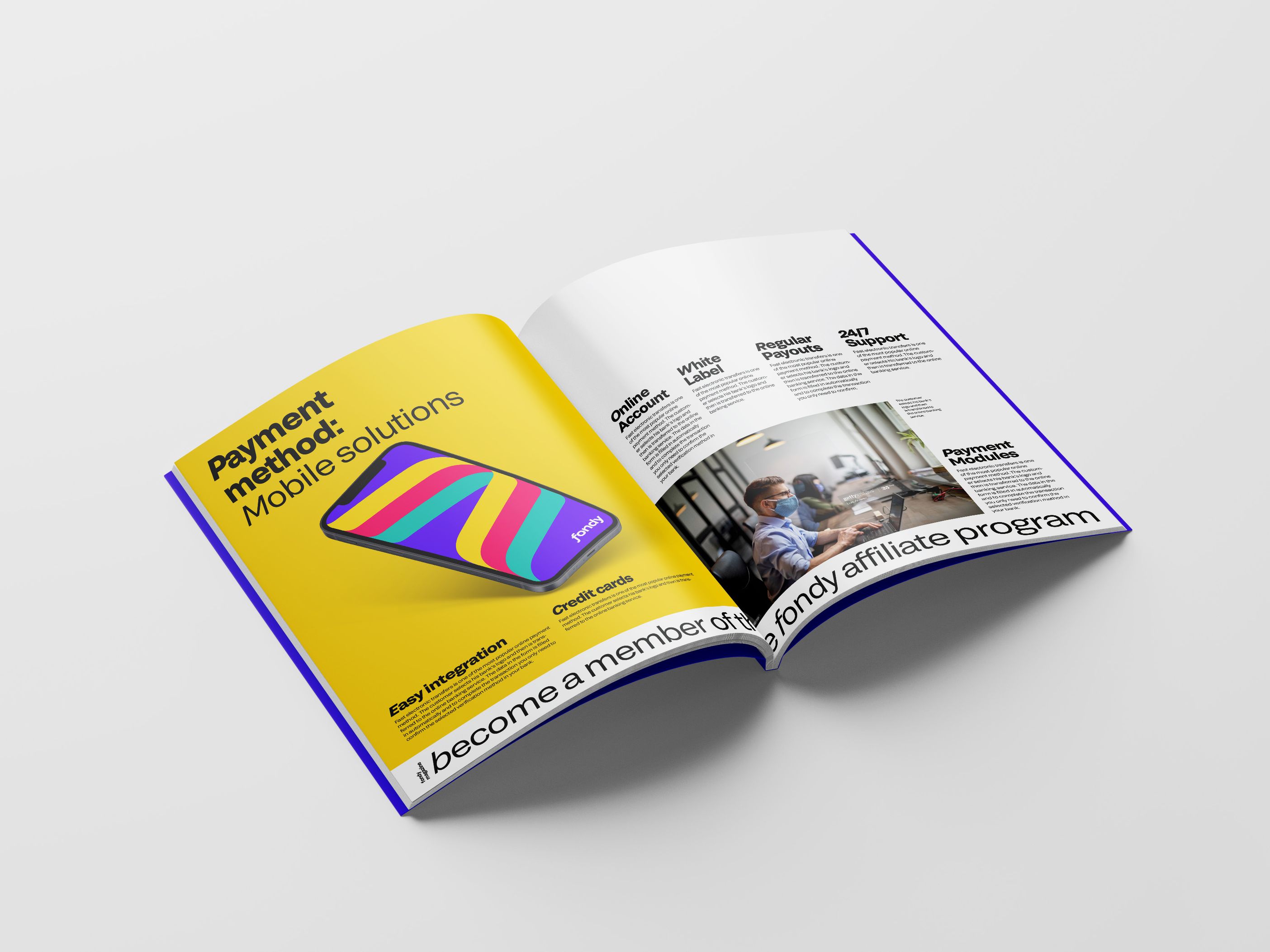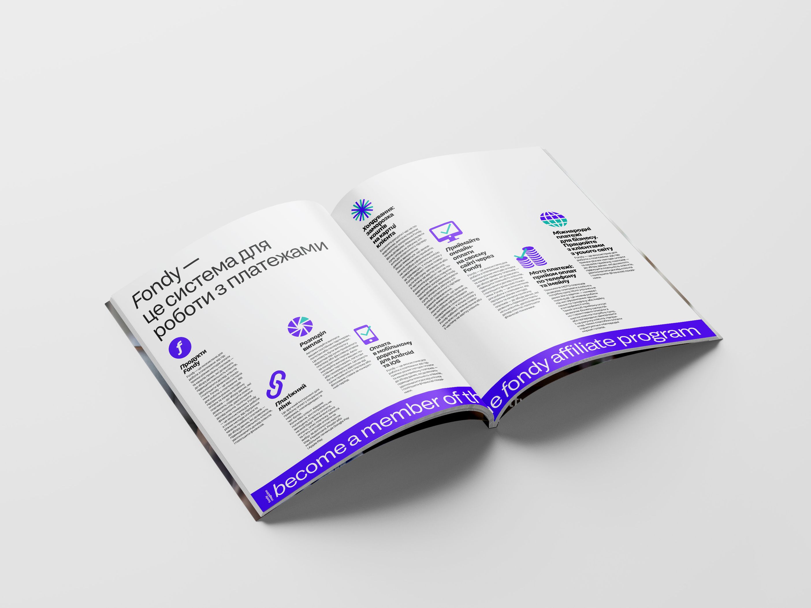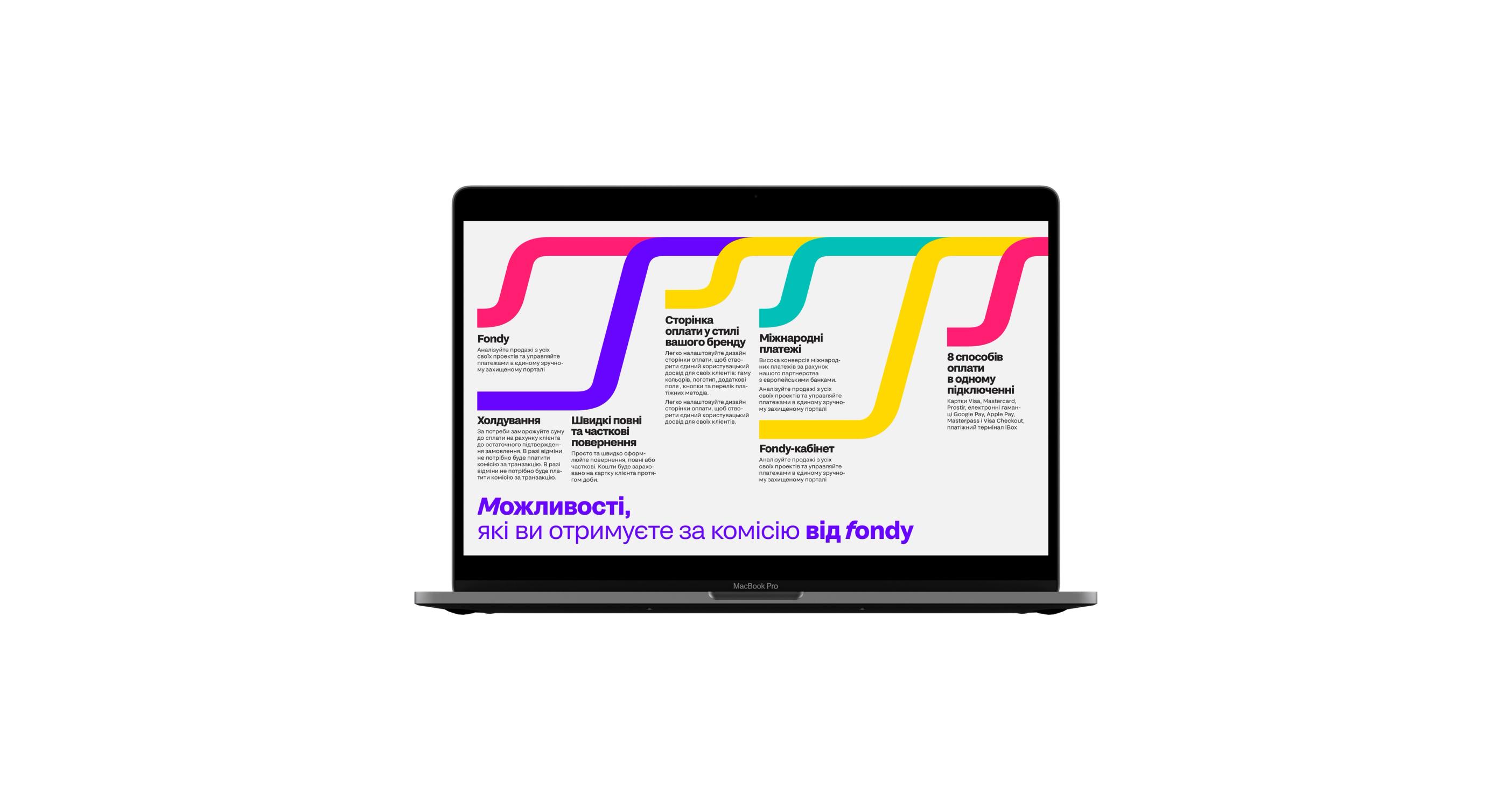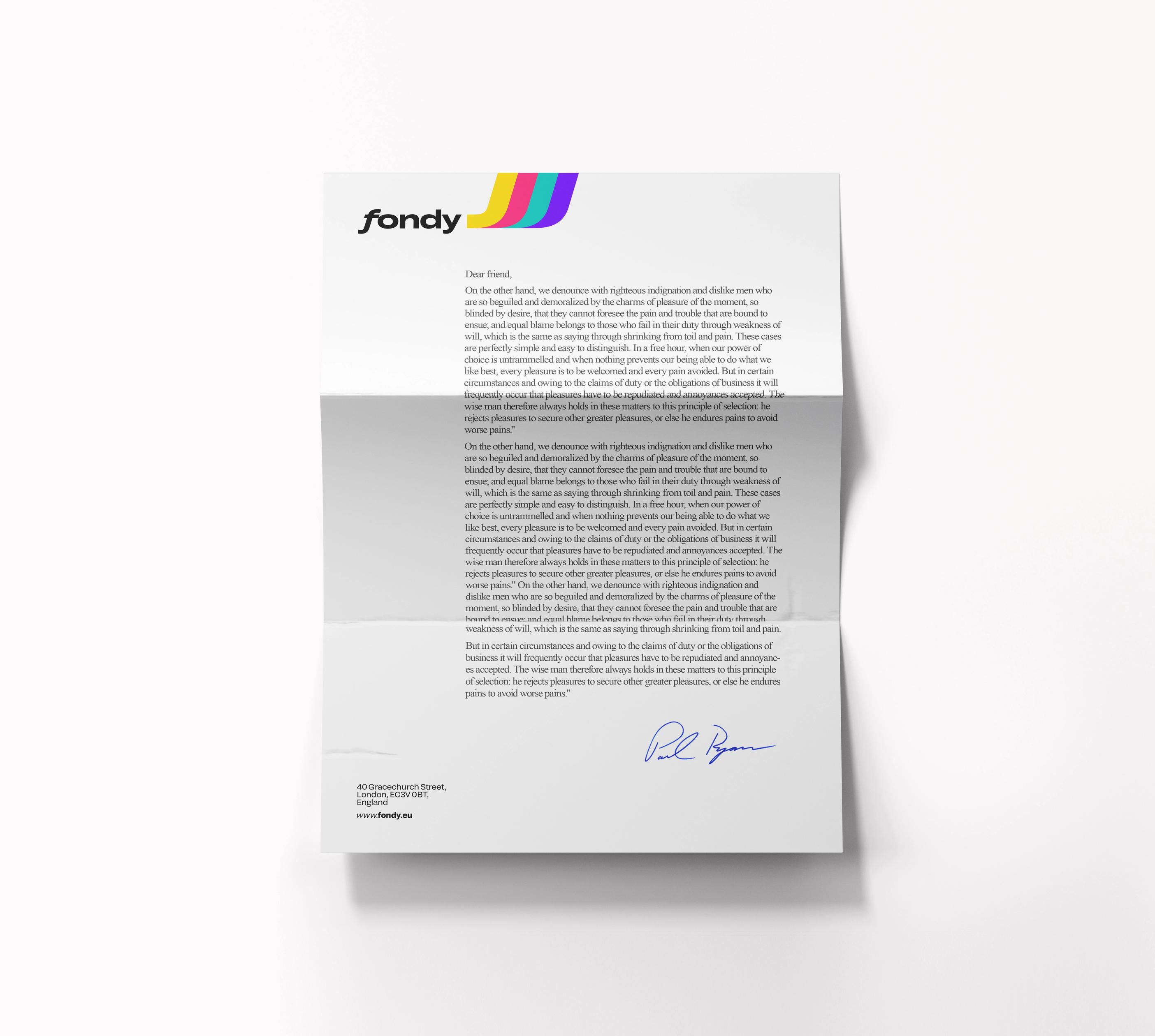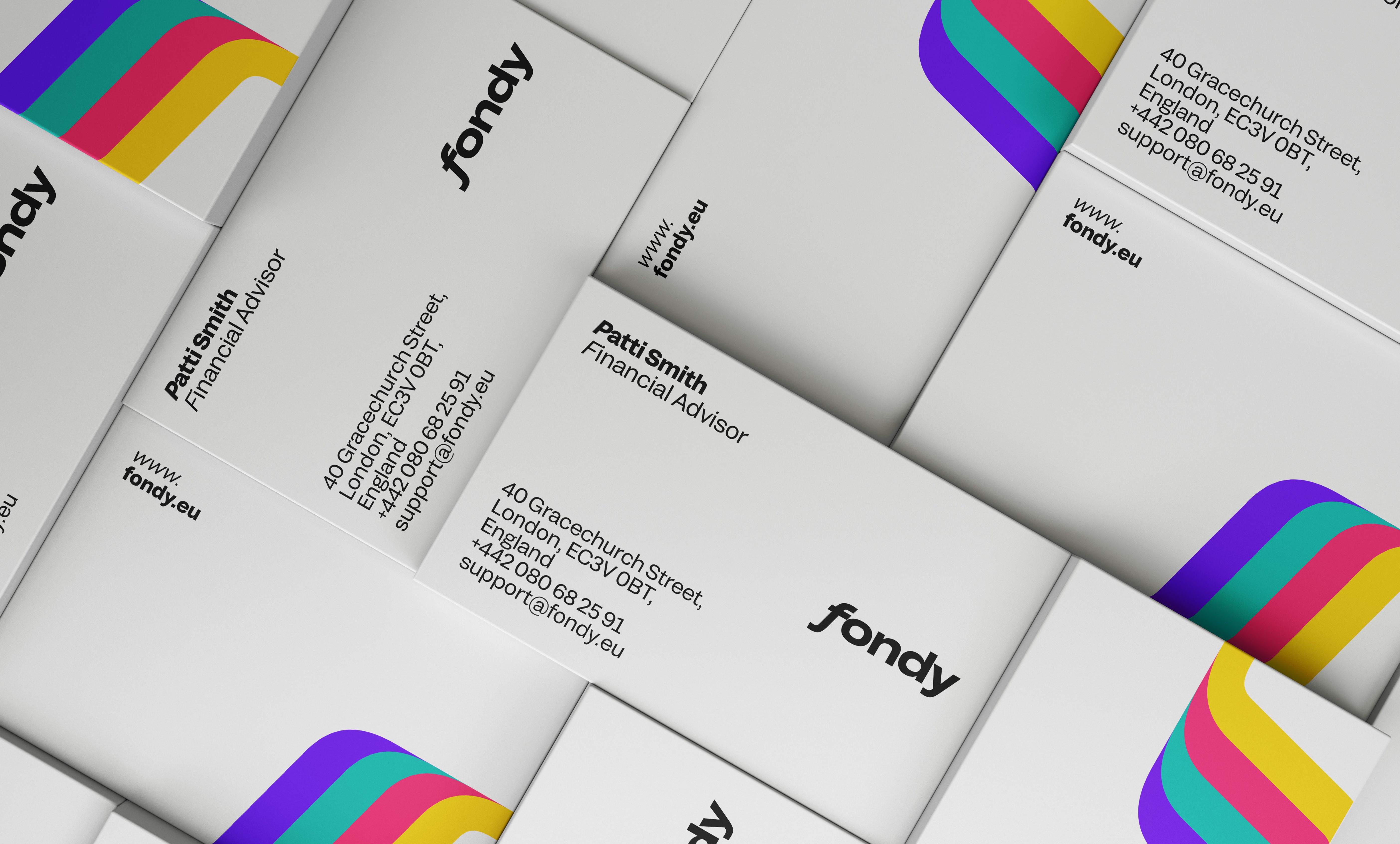 Fondy is a platform where payments flow freely from consumers to recipients in a stream that is uninterrupted by complicated iterations with multiple parties and documents. ƒ stands for the flow—we took the abandoned symbol of guilder and made it a part of the identity system where everything flows and moves to reflex the dynamics, flexibility, and fluidness of the platform.