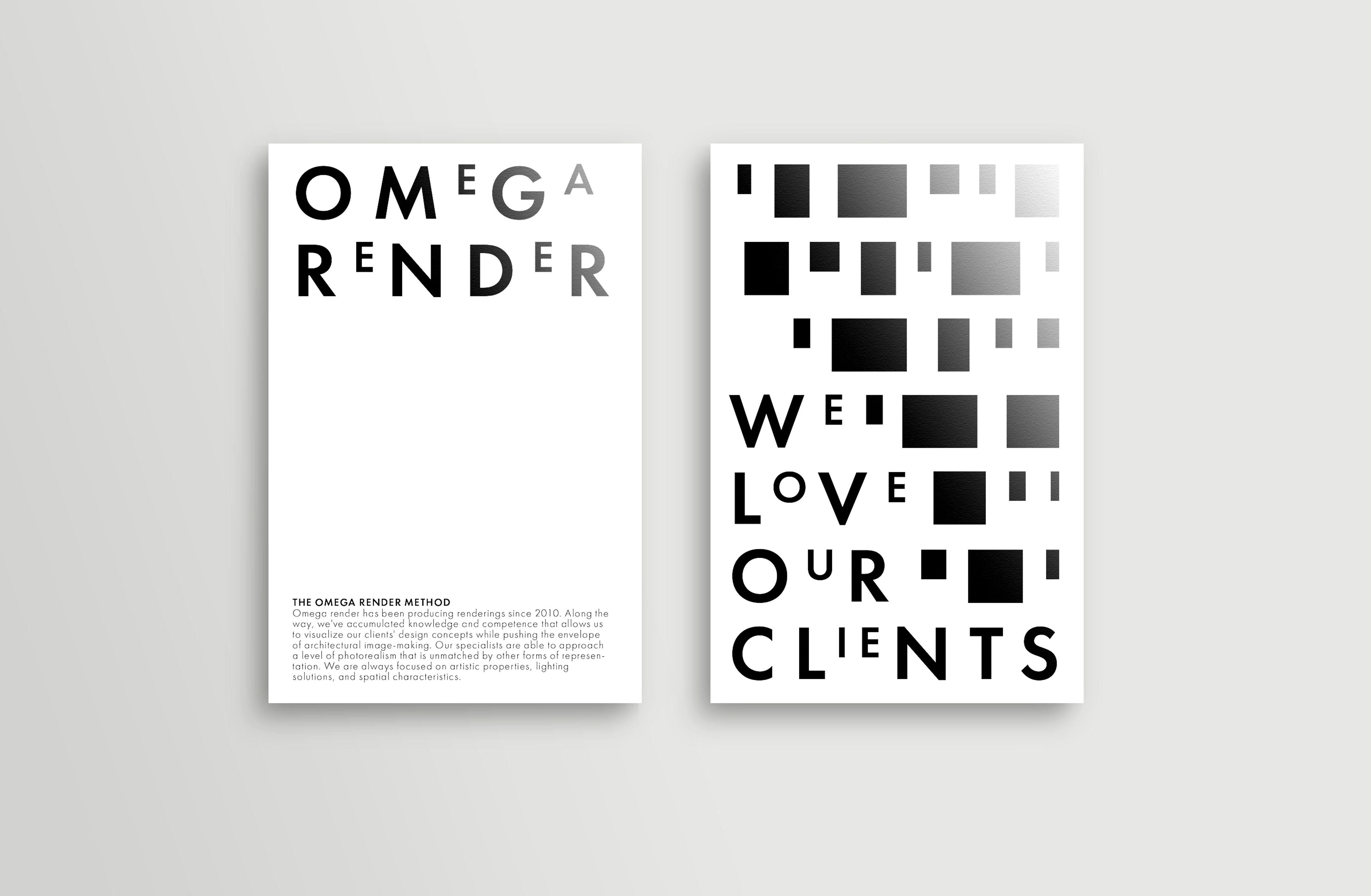 Omega Render is a global 3D rendering studio specialising in architectural visualisation with an emphasis on artistry, light, and space. In their brand identity, we wanted to capture this architectural intelligence through clarity and balance: sharp typography, a strict grid, and the subtle rhythm of differently sized letters that hint at perspective, structure, and depth. We also designed the brand identity for their sister company Omega Games.
