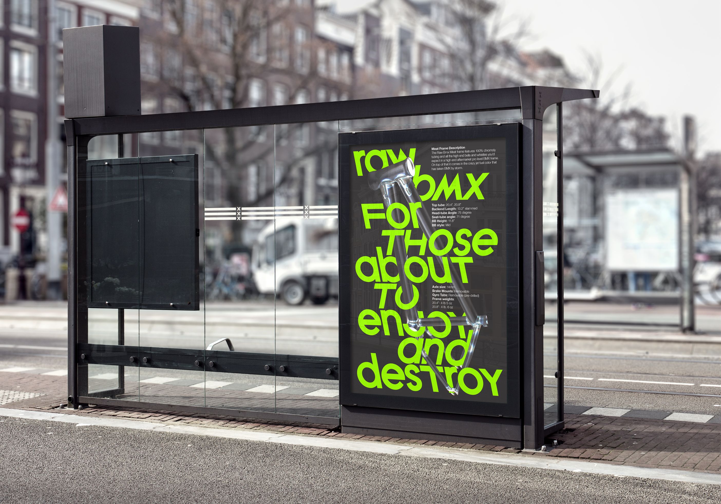 RAW BMX is a local bicycle brand from Kharkiv — a city that is both rigid and proletarian, but also smart, educated, and stylish. We brought all of this freshness, unpredictability and, at times, brutality into their brand identity through bold typography and mad colours. The result is a brand that is both sassy and highbrow.